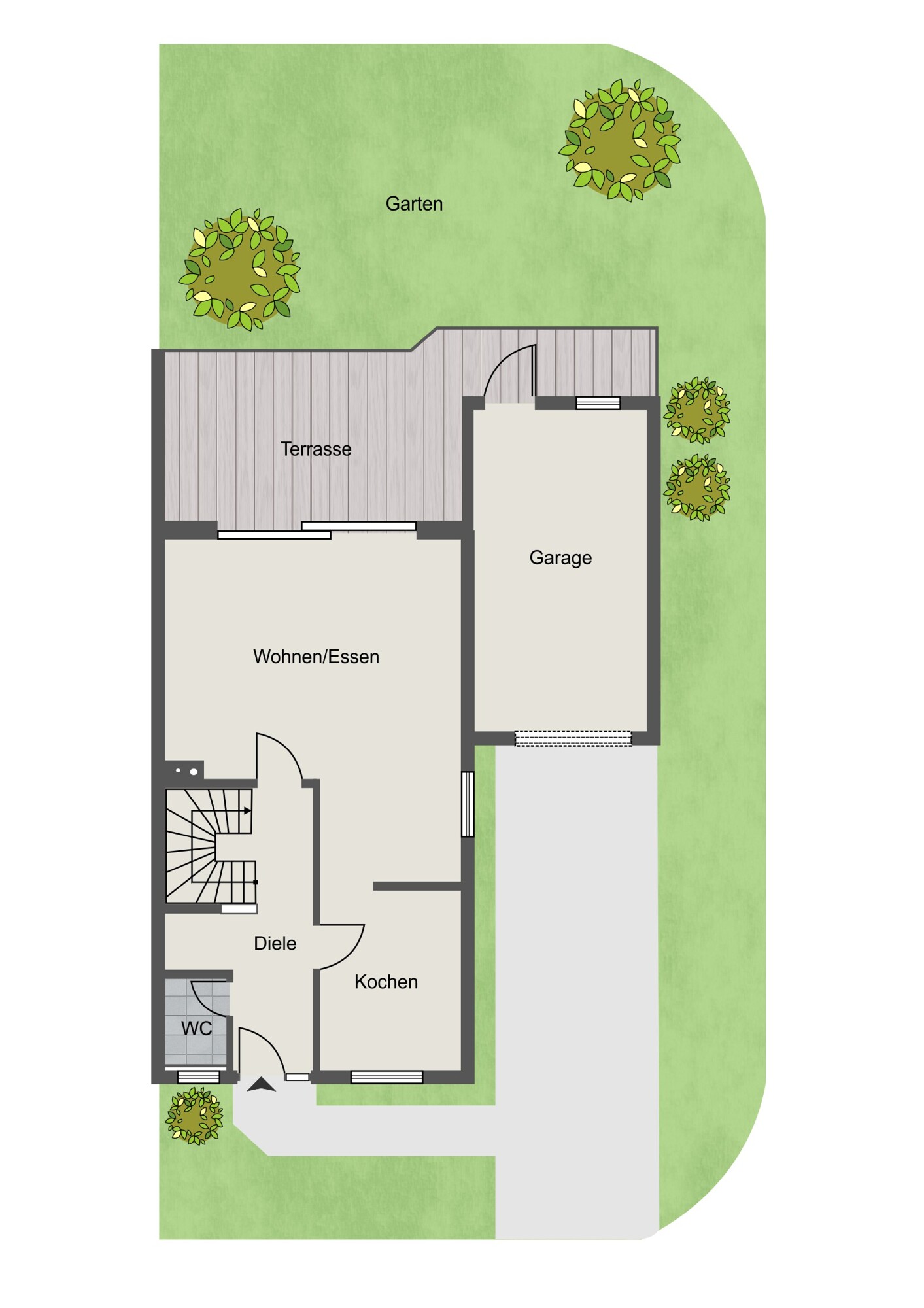 - übergroße Einzelgarage mit direktem Gartenzugang