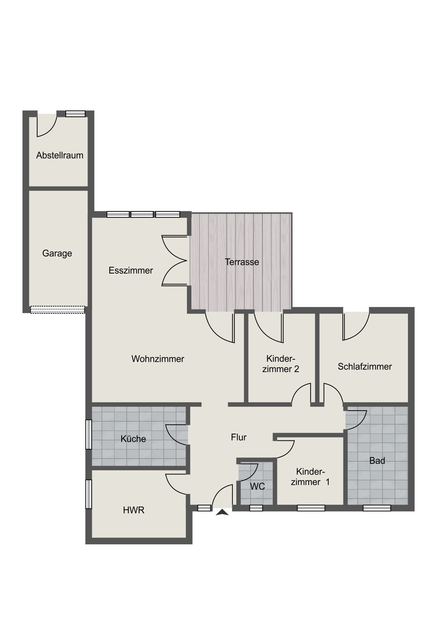 Ein Keller steht nicht zur Verfügung; dafür bietet ein großzügiger Hauswirtschaftsraum praktische Abstellflächen sowie Anschlüsse für Waschmaschine und Trockner. Hier befindet sich auch die moderne Gas-Brennwerttherme mit Fußbodenheizung und solarunterstützter Warmwasseraufbereitung.