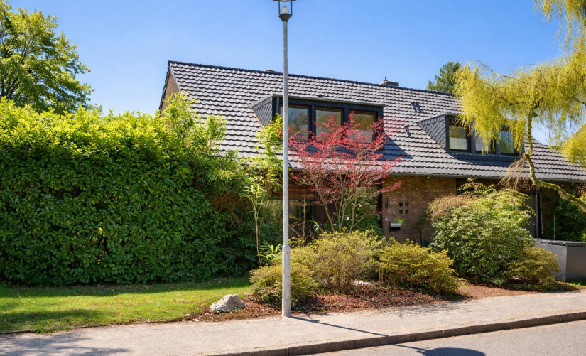 In einer gewachsenen und ruhigen Wohnlage von Krefeld-Benrad, präsentiert sich diese Einfamilien-Doppelhaushälfte aus dem Jahr 1964 auf einem ca. 569 m² großen Sonnen-Grundstück. Die klassische Architektur mit Satteldach, Gauben und zurückhaltender Klinkerfassade fügt sich harmonisch in die Umgebung ein und vermittelt bereits von außen ein Gefühl von Beständigkeit und guter Wohnqualität.