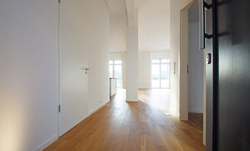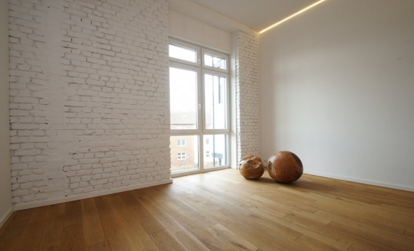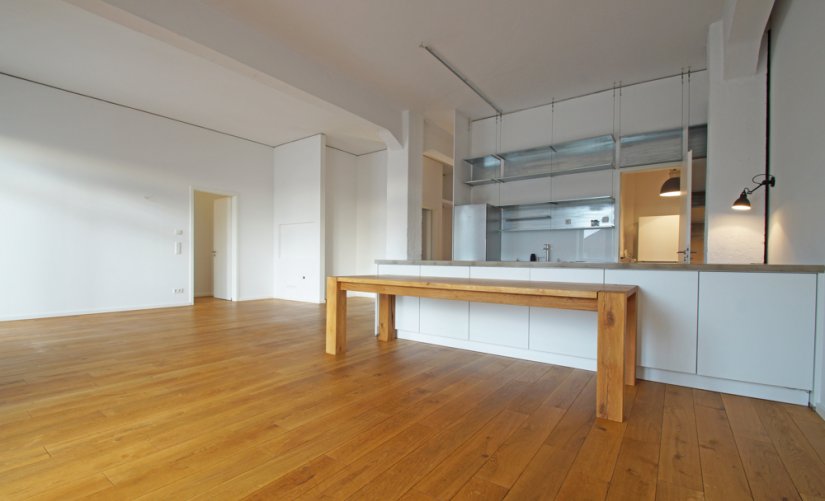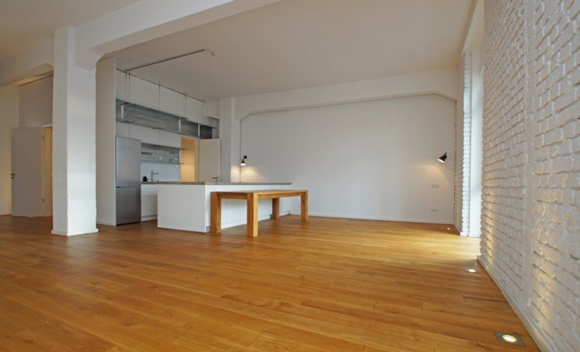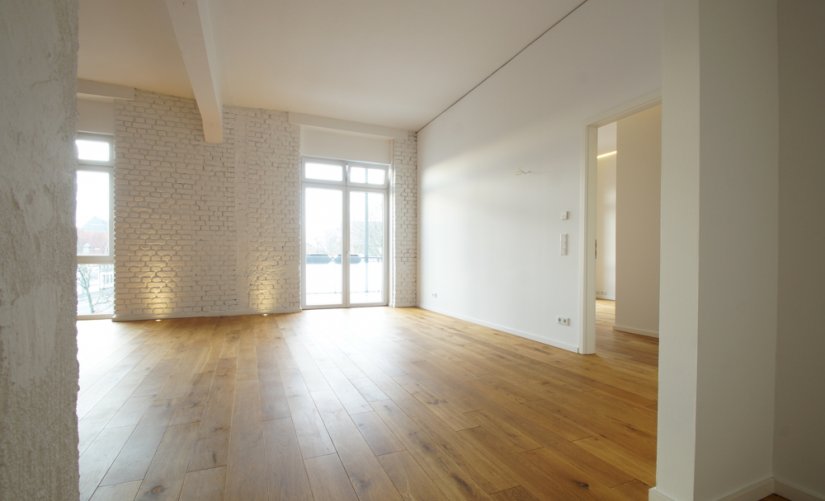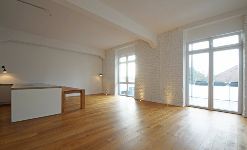 Loft-Typisch, erwarten Sie viele große und bodentiefe Fenster, hohe Raumdecken, verklinkerte Innenwände, ein hochwertiger Holzdielenboden und vieles mehr!