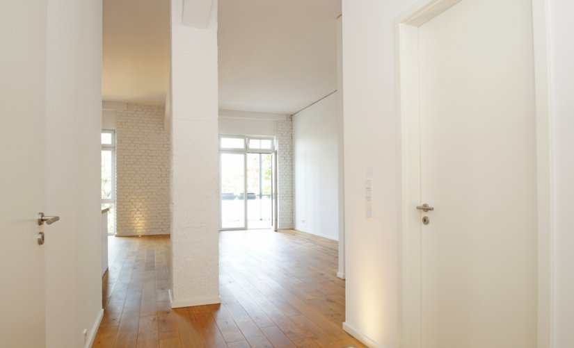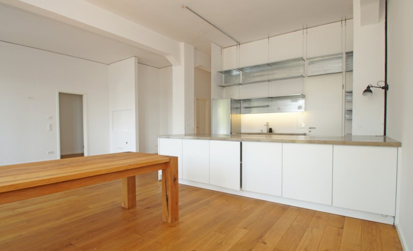 Loft-Typisch, erwarten Sie viele große und bodentiefe Fenster, hohe Raumdecken, verklinkerte Innenwände, ein hochwertiger Holzdielenboden und vieles mehr!